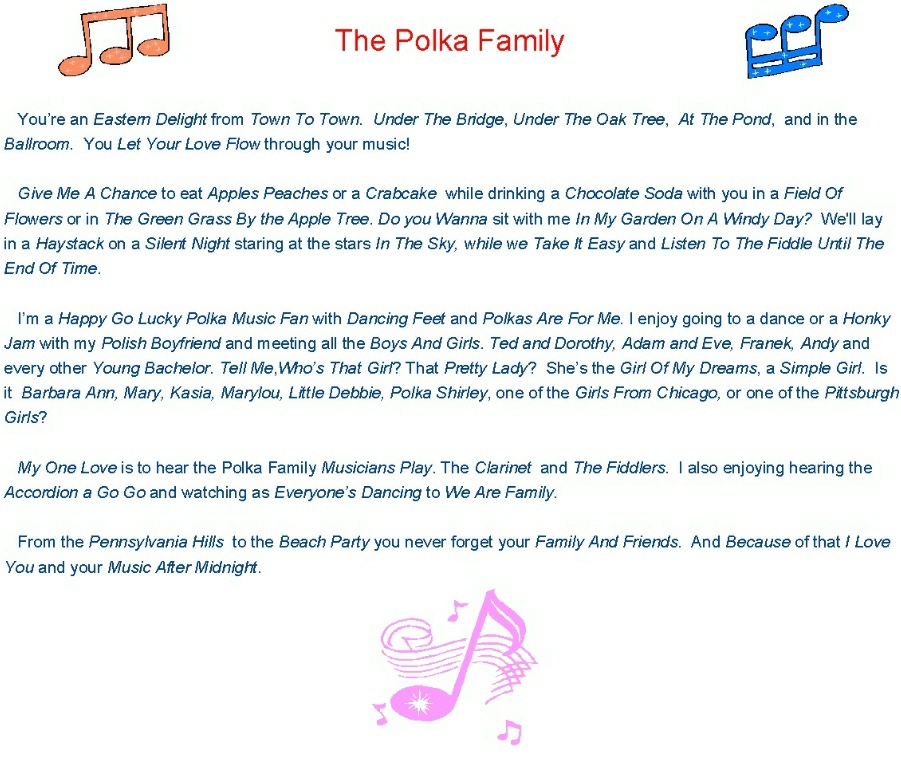 All of the words in Italics are song titles that